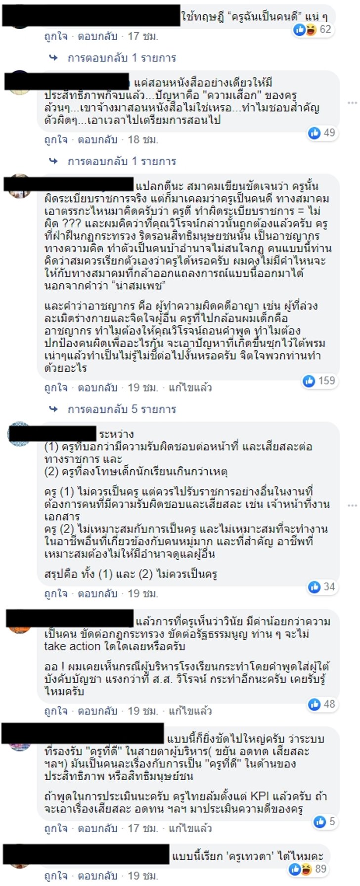 อย่างไรก็ตาม หลังจากมีการโพสต์แถลงการณ์ดังกล่าวออกไป ได้มีคนเข้ามาแสดงความคิดเห็นมากมาย หลายคนแสดงความไม่เห็นด้วยกับสมาคมฯ และมองว่าการที่บอกว่าครูคนดังกล่าวรับผิดชอบในหน้าที่การงานดี ไม่เกี่ยวข้องกับการทำผิดกฎกระทรวงและละเมิดสิทธินักเรียนได้