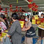 ผู้สื่อข่าวรายงานว่า (15 ส.ค.) บรรยากาศที่ศาลา “อาตี๋สำเภาทอง-ไอ้ไข่เด็กวัดเจดีย์” ภายในวัดใหม่สี่หมื่น ต.สี่หมื่น อ.ดำเนินสะดวก จ.ราชบุรี เป็นไปอย่างคึกคัก โค้งสุดท้ายก่อนผลการออกสลากกินแบ่งรัฐบาลจะออกในงวดประจำวันที่ 16 สิงหาคม 2563 คอหวยจากทั่วสารทิศต่างแห่กันมากราบไหว้ และขอโชคลาภจากการกราบไหว้สิ่งศักดิ์สิทธิ์ เช่น พระพุทธรูป หลวงปู่ทวด รูปเหมือนอดีตเจ้าอาวาส เทพทันใจ พระพิฆเนศ และ อาตี๋สำเภาทองพร้อมด้วย ไอ้ไข่ เด็กวัดเจดีย์ กันอย่างไม่ขาดสาย