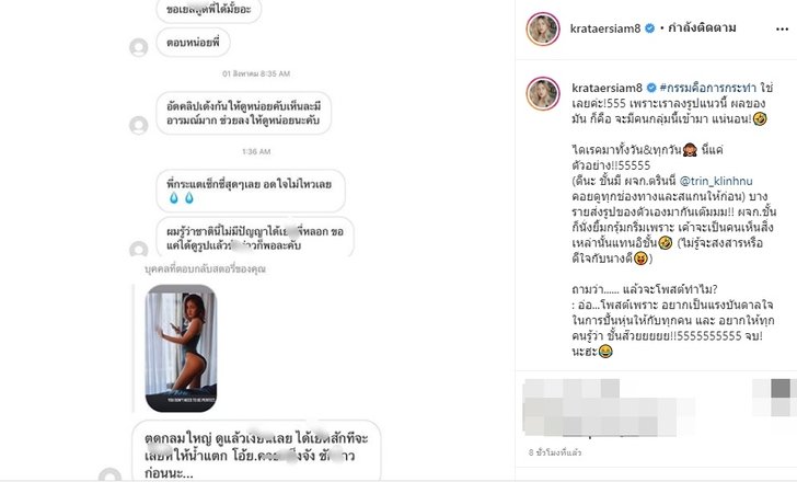"กระแต อาร์สยาม" แซ่บเวอร์ภาพใส่ลูกไม้ซีทรู เจอคนทักข้อความมาทันที