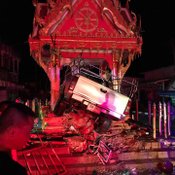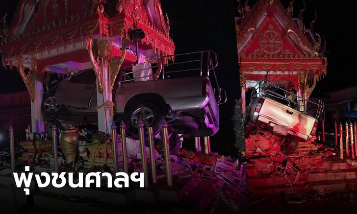 หนุ่มซิ่งกระบะฝ่าสายฝน พุ่งชนศาลหลักเมืองลำทะเมนชัย คอหวยแห่ส่องทะเบียนรถ