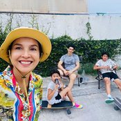 และภาพนี้ที่ดูเหมือนว่าคนแทบจะไม่ได้โฟกัสที่บ้าน เพราะท่าโพสฟาดๆ เท่ๆของ เคน-หน่อย กับสไตล์การแต่งตัวที่เป็นเอกลักษณ์ เคมีเข้ากันมากคู่นี้ ถึงลูกๆ จะเริ่มโตกันแล้ว แต่พ่อแม่ก็ยังสวยหล่ออยู่เลย
