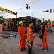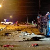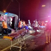 รถทัวร์ 2 ชั้น พาคณะ อสม.ร้อยเอ็ด ไปดูงานที่พัทยา เกิดพุ่งชนท้ายรถพ่วงกลางดึก เสียชีวิตแล้ว 8 ราย บาดเจ็บจำนวนมาก