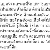 "ขอโทษสังคมเสียใจที่เป็นแบบอย่างที่ไม่ดี รู้สึกเสียใจในการกระทำผิด สุดท้ายบทลงโทษครั้งนี้สมควรแล้วได้รับความสูญเสีย คนรัก ครอบครัว สมควรจริงๆ ติ๊กขอน้อมรับความผิดนี้ค่ะ ต่อไปจะไม่ทำผิดแบบนี้อีก ขอให้ทุกคนให้อภัยด้วยนะคะ"