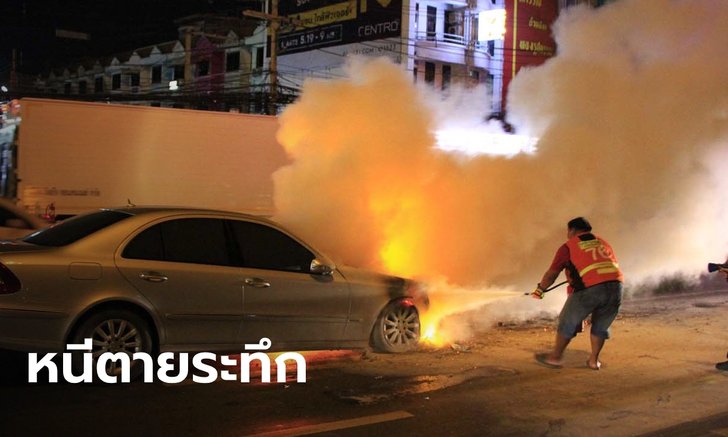 ข้าราชการสาวหนีตายระทึก ขับเบนซ์มาดีๆ ไฟลุกไหม้ห้องเครื่องกลางถนน