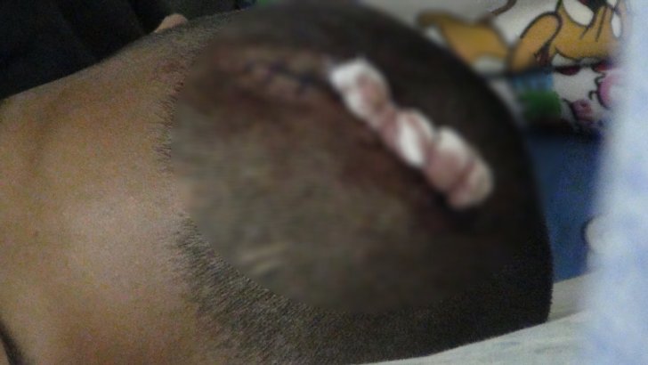 โดยถูกตีมาจนหัวแบะ คล้ายกับลูกแตงโมแตก บาดแผลยาวถึงกว่า 10 ซม. และลึกมากจนตนต้องใช้เสื้อช่วยมัดห่อศีรษะเอาไว้ให้ และรีบแจ้งไปยังทาง รพ. จากนั้นในเวลาประมาณเที่ยงคืนเศษของวันที่ 3 ต.ค.63 จึงมีรถของหน่วยกู้ภัยฯ เดินทางมารับตัว ช่วยนำไปส่งยังที่ รพ.พุทธโสธร ตามที่ตกเป็นข่าวก่อนที่แพทย์จะให้เด็กกลับมานอนพักรักษาตัวอยู่ที่บ้าน โดยที่อาการล่าสุดยังคงนอนซม คลื่นไส้ ปวดศีรษะ