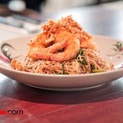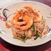 เมนูขึ้นชื่อที่เป็นสูตรเฉพาะของทางร้าน โดยมีจุดเด่นอยู่ที่การผัดเส้นหมี่เข้ากับเครื่องปรุงอย่างกลมกล่อม และมีกุ้งตัวโตๆ เป็นท็อปปิ้งพร้อมกับไข่เจียวทอดกรอบ เป็นส่วนผสมที่ลงตัวอร่อยมาก