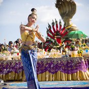 วานนี้ (24 พ.ย.) บริเวณลานพญาศรีสัตตนาคราช ริมฝั่งแม่น้ำโขง เมืองนครพนม นายรพี สุขภัทราภิรมย์ หรือ เสี่ยนอส อายุ 38 ปี เจ้าของโชว์รูมรถหรู ย่านพระราม 9 กรุงเทพฯ และ นายอัครพาทย์ สุขภัทราภิรมย์ หรือ เสี่ยซัน น้องชาย วัย 30 ปี พร้อมครอบครัว ได้มาประกอบพิธีแก้บน โดยมี แต้ว ณฐพร เตมีรักษ์ ดารานักแสดงชื่อดังทางช่อง 3 นางเอกละครดังเรื่องนาคี มารำบวงสรวงพญาศรีสัตตนาคราช ท่ามกลางประชาชนเข้าร่วมจำนวนมาก