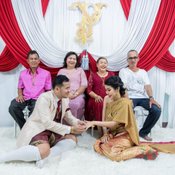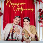 ซึ่งงานในช่วงเช้าเป็นพิธีแบบไทยๆ ขณะที่ช่วงเย็นเป็นการเลี้ยงฉลองมงคลสมรส ท่ามกลางญาติสนิมมิตรสหายมากมายที่เดินทางมาเป็นสักขีพยานในรักครั้งใหม่ของเจ้าตัวกันอย่างมากมาย