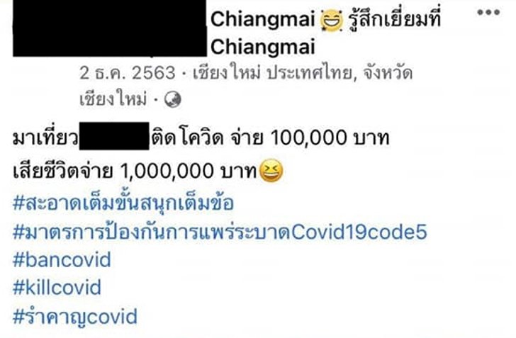 กลายเป็นอีกประเด็นที่ถูกพูดถึงเป็นอย่างมาก หลังจากชาวเน็ตแคปทันว่า ผับดังเมืองเชียงใหม่เคยโพสต์ว่า "มาเที่ยว...ติดโควิด-19 จ่าย 100,000 บาท เสียชีวิตจ่าย 1,000,000 บาท #สะอาดเต็มขั้นสนุกเต็มข้อ #มาตรการป้องกันการแพร่ระบาด COVID-19" ก่อนที่ต่อมาทางร้านจะลบโพสต์ดังกล่าวออกไป เนื่องจากมีคนติดโควิด-19 จากการมาเคาท์ดาวน์ที่ร้าน