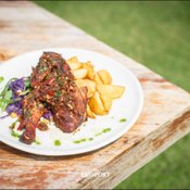 ไก่ย่างซอสพิริพิริ ศรีราชา ไก่ย่างเนื้อนุ่มรสซอสเข้มข้นเข้าเนื้อ เสิร์ฟมาพร้อมสลัดผัก