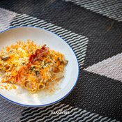 สปาเก็ตตี้หมูกรอบคั่วเกลือ ไข่เค็มดาว เมนูรสจัดจ้าน เผ็ดนิดๆโดนใจ