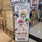 หากใครอยากลองชิม หรือถ่ายรูปกับไอศกรีมน้องแมว น้องสุนัขไปได้เลยที่ร้าน IceDEA ที่ชั้น 4 หอศิลปวัฒนธรรมแห่งกรุงเทพฯ ตอนนี้ด้านในร้านยังไม่เปิดให้นั่ง จึงมีแต่ที่นั่งหน้าร้านที่จัดเก้าอี้ไว้แบบห่างๆ ไปลองชิมกันได้นะคะ