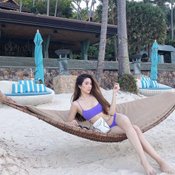 วุ้นเส้น พาสะดุดหยุดทุกสายตามากับชุดบิกินีสีม่วง เจิดจ้าท้าแสงแดดมากๆ ยกบัลลังก์ตำแหน่งเซ็กซี่ให้ไปเลย